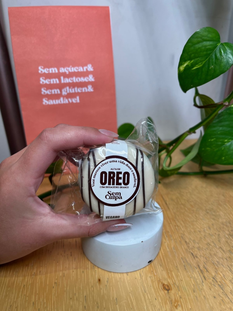 Esse sabor novo é feito com biscoito de cacau recheado com brigadeiro de chocolate branco. É SEM LÁCTEOS, sem glúten, adoçado com eritritol. Perfeitooo para quem tem restrição à adoçantes ou (APLV) alergia à proteína do leite de vaca.