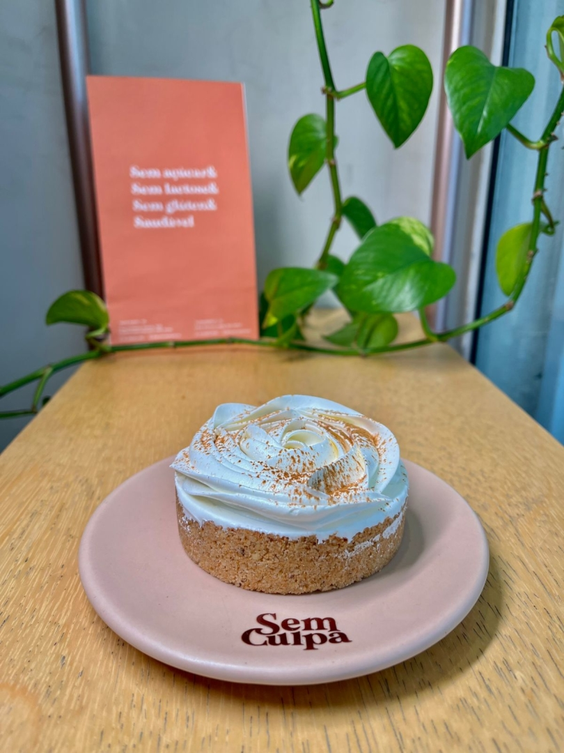 Massa de biscoito de amêndoas, mousse de limão siciliano e chantilly.